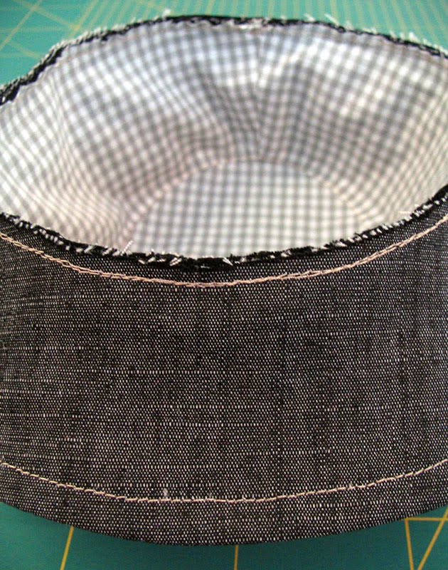 Joining crown lining: Stitch side panels together, right sides facing, and press seams open. Stitch crown top panel to side panels, right sides together. Fold seam allowances toward side panels and topstitch seam.