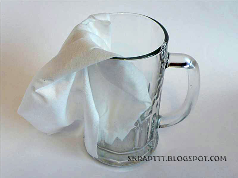 3. На предыдущем этапе было несколько подходов по примерке основы. Основа потихоньку крошится, да и от наших пальцев остаются отпечатки. Поэтому важный момент: берем тряпочку и оттираем бокал до блеска. Можно предварительно вымыть или воспользоваться средствами для стекла.