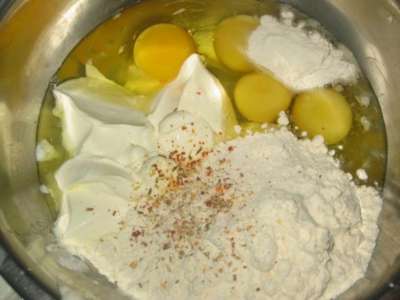 Займёися приготовлением теста. Все продукты смешать до однородного состояния.