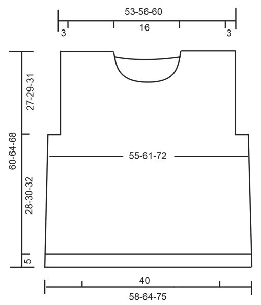 Когда длина детали составит 31-33-35 см, провяжите кромочные края по 9-11-17 петель с каждой стороны. Когда будет провязано 2 кромки над крайними 9 -11-17 п с каждой стороны, закрыть по 4-6-12 п для проймы в начале следующих 2-х рядов = 118-124-130 п. Затем вязать узором как раньше над средними 98 п и вязать 5- 8-11 петель лицевой гладью внутри, 5 петель платочной вязкой в каждую сторону, вязать до высоты детали примерно 49-52-56 см - чтобы получить узор на шея уменьшится так же, как на картинке, отрегулируйте так, чтобы A.2 работал вертикально, прежде чем продолжить.