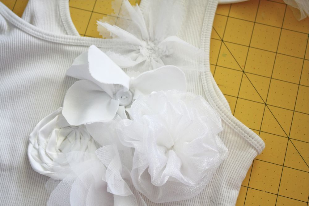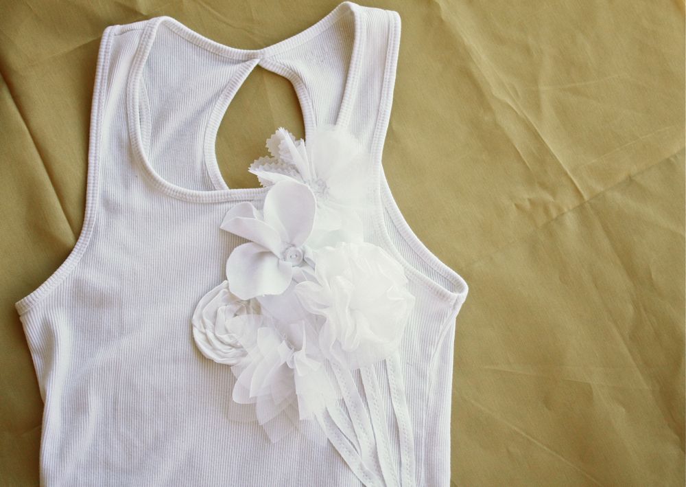 Учимся как украсить майку и смотрим удачный мастер-класс на цветок из шифона.