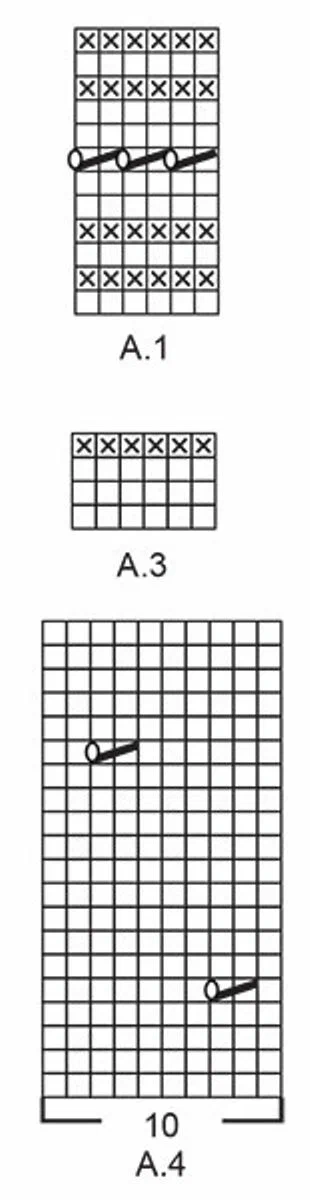 Вяжите A.3 до высоты кокетки ок. 19-21-23-24-26-28 см от маркера на горловине; заканчивая после полного повторения в высоту.