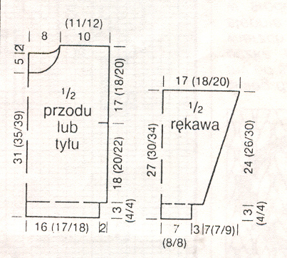 А детские свитерки из журнала на размеры 104 - 128 вязались по этой выкройке: