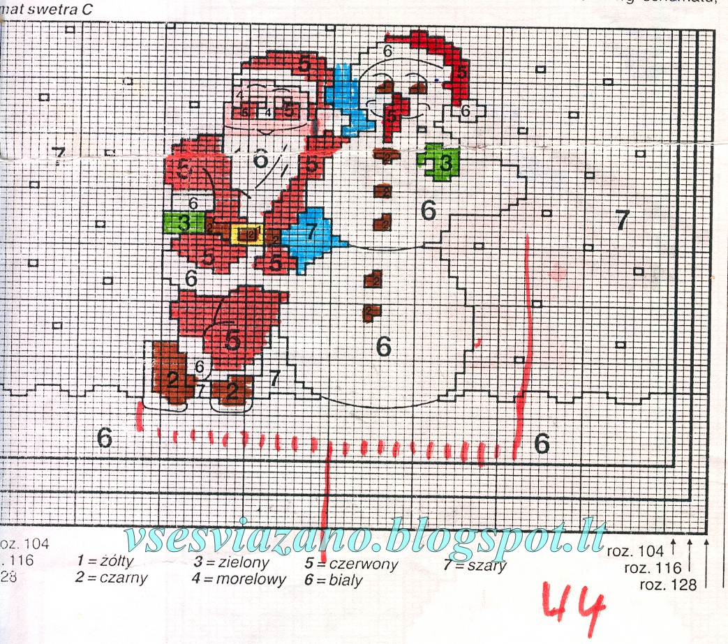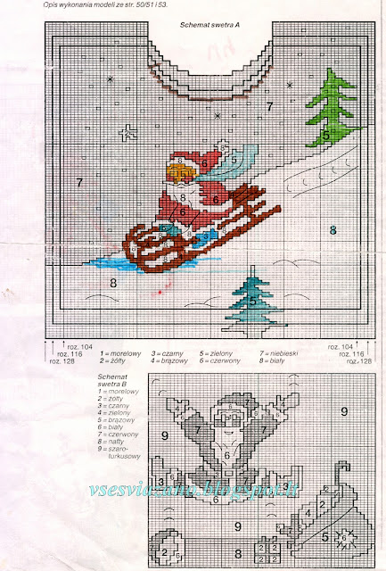 ОПИСАНИЕ И 3 СХЕМЫ СВИТЕРА С ДЕДОМ МОРОЗОМ: