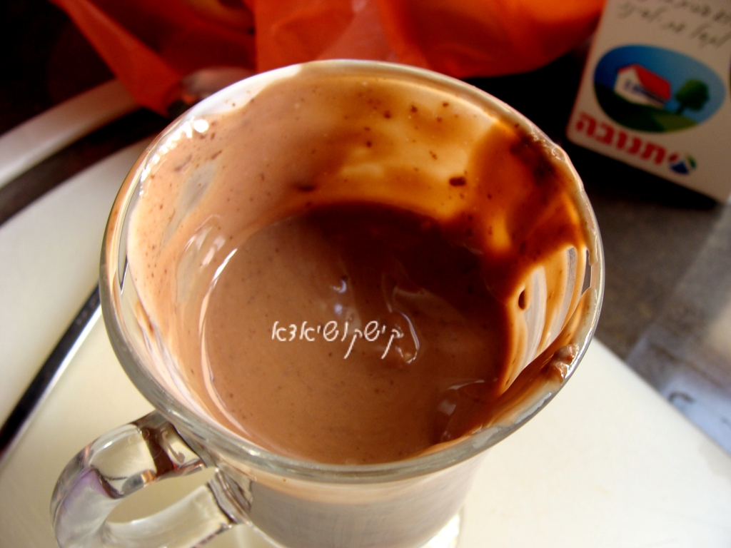 אני השארתי בלי כוונה גושים קטנים של שוקולד- בדיעבד- זה היה רעיון מעולה, נוצרו בתוך הארטיק שביבי שוקולד.