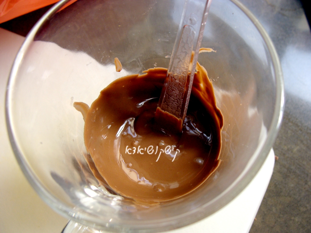 להמיס את השוקולד (בספר כתוב בבן מארי- אני שמתי במיקרו)