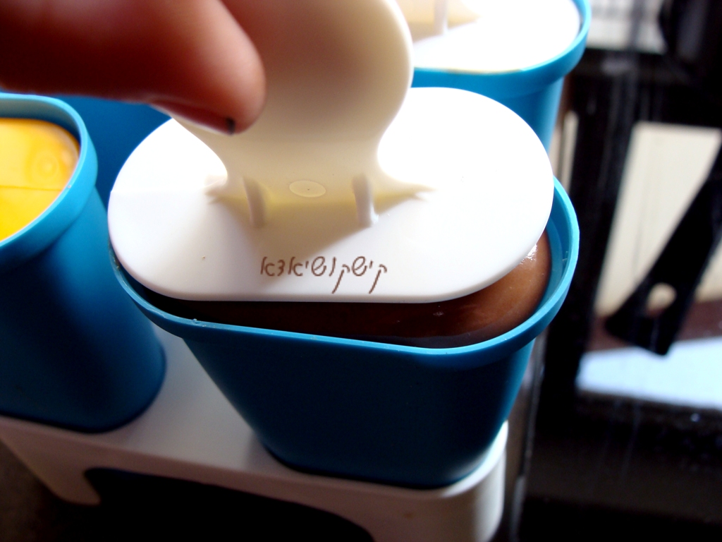 ליצוק את הרוטב לתוך תבנית קרטיב (או לכוס פלסטיק עם כפית שתתפקד כמקל)