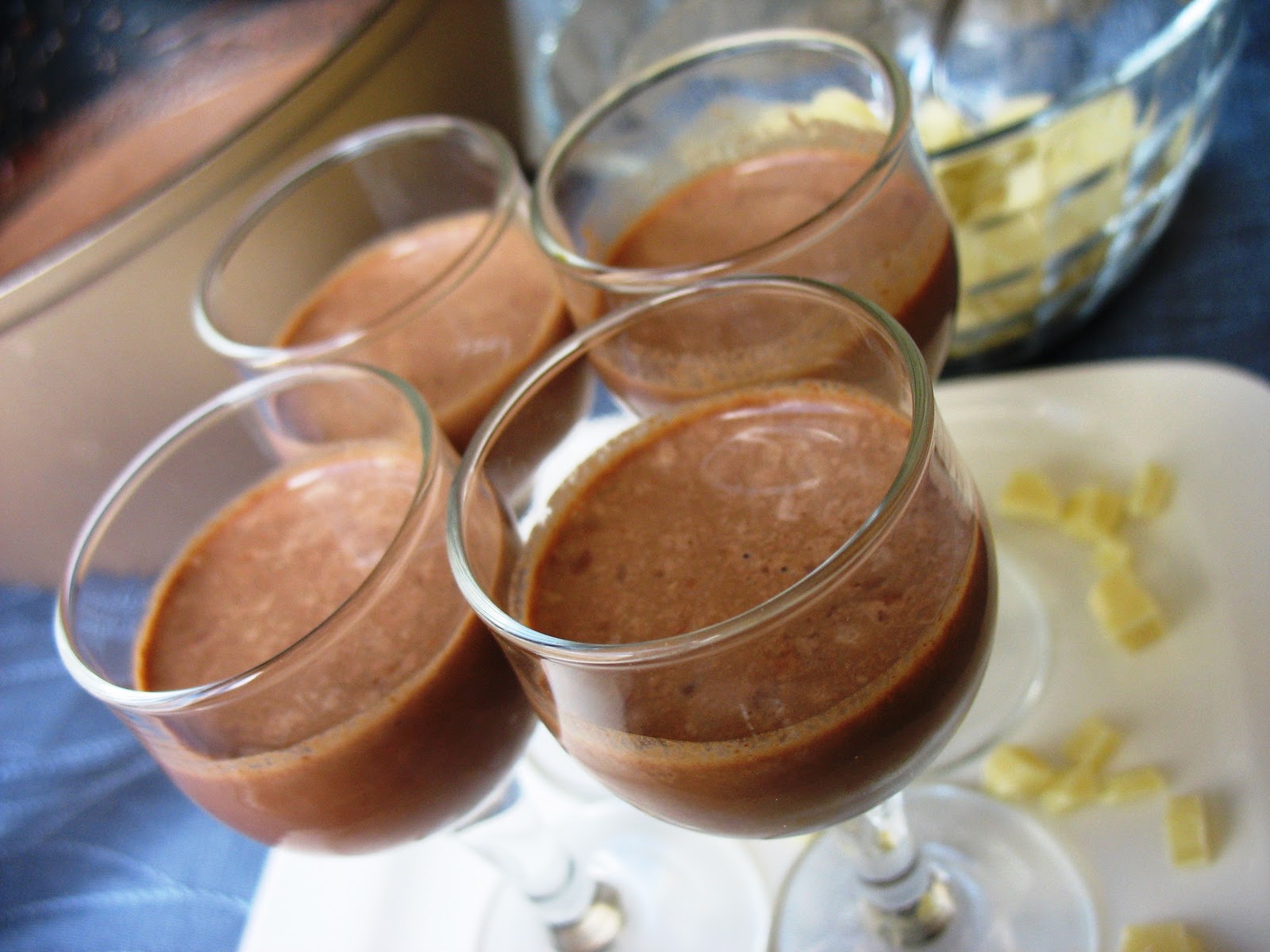 מרק שוקולד עם "שקדי מרק" של שוקולד לבן