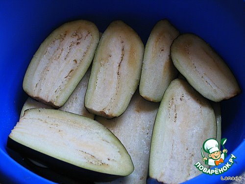 После того, как баклажаны настоялись, промываем их водой (смываем соль), обсушиваем полотенцем и