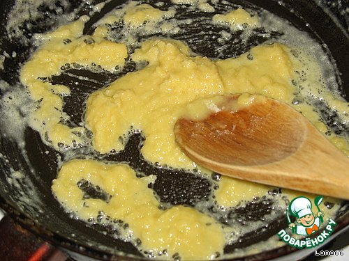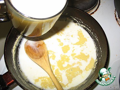 Теперь приготовим соус Бешамель. На разогретой сковороде растопить сливочное масло, добавить муку и прожарить до золотистого цвета. |