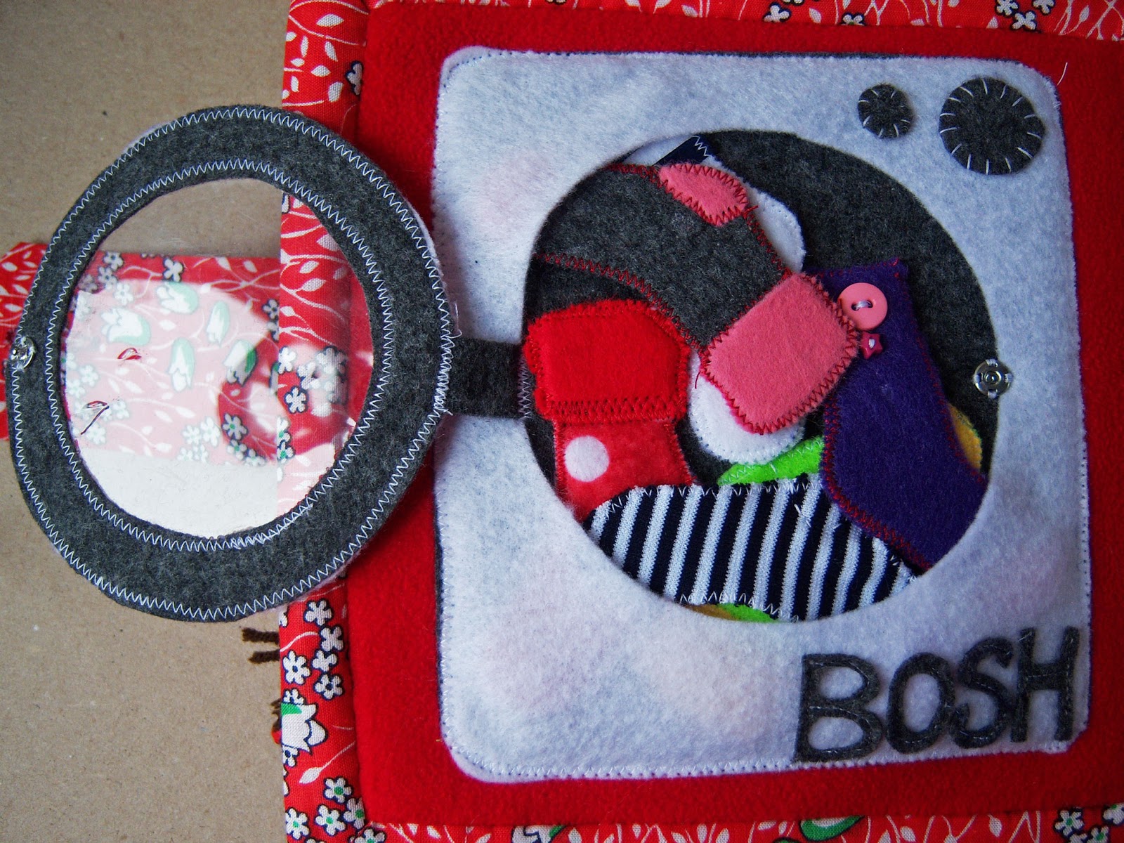 Пральна машина з фетру, "скло" - слюда з упаковки дитячих іграшок