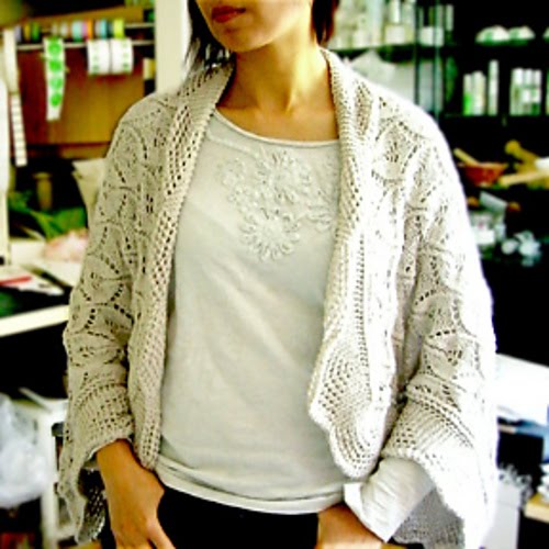 Накидка вяжется одной деталью снизу вверх. Ажурная кайма вяжется отдельно, затем присоединяется к внешнему краю тела накидки, используя закрытие петель тремя спицами.