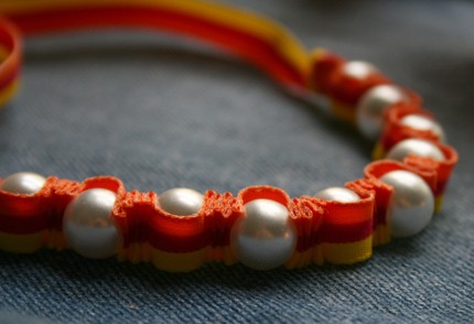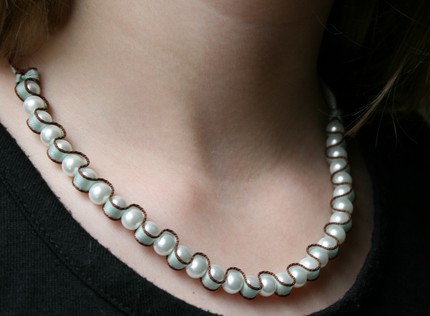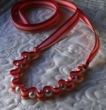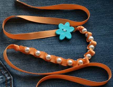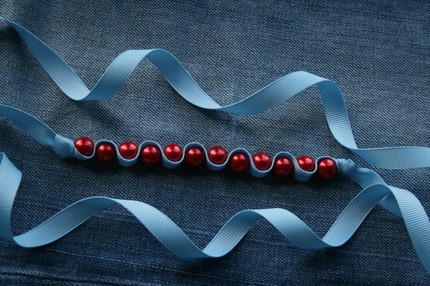 5. На ленте, как можно ближе к бусинам, завязать узел.