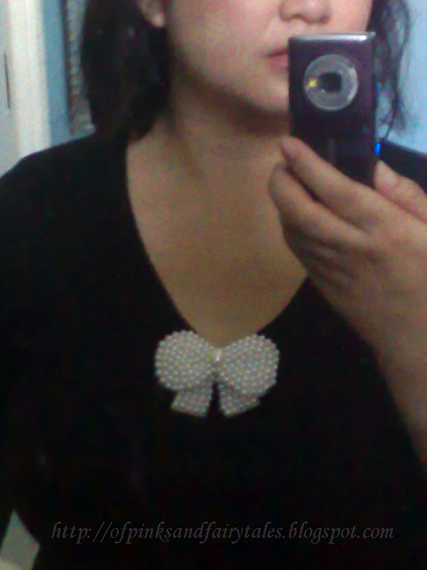 Очень красивая брошь-бантик, расшитая жемчужинами, ведь у многих, думаю, в закромах найдётся бижутерийная нитка-другая жемчужных бус.