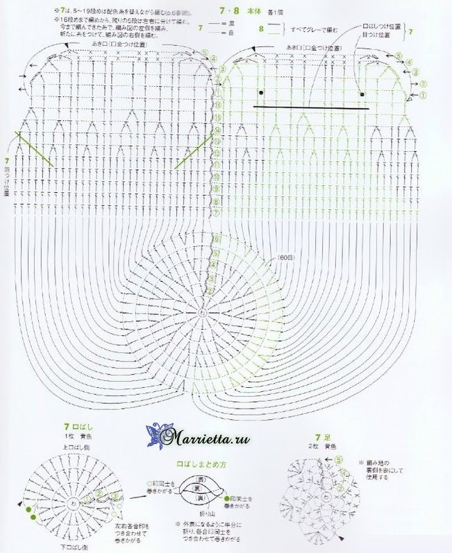 [597x511] Схемы вязания кошелька-пингвина
