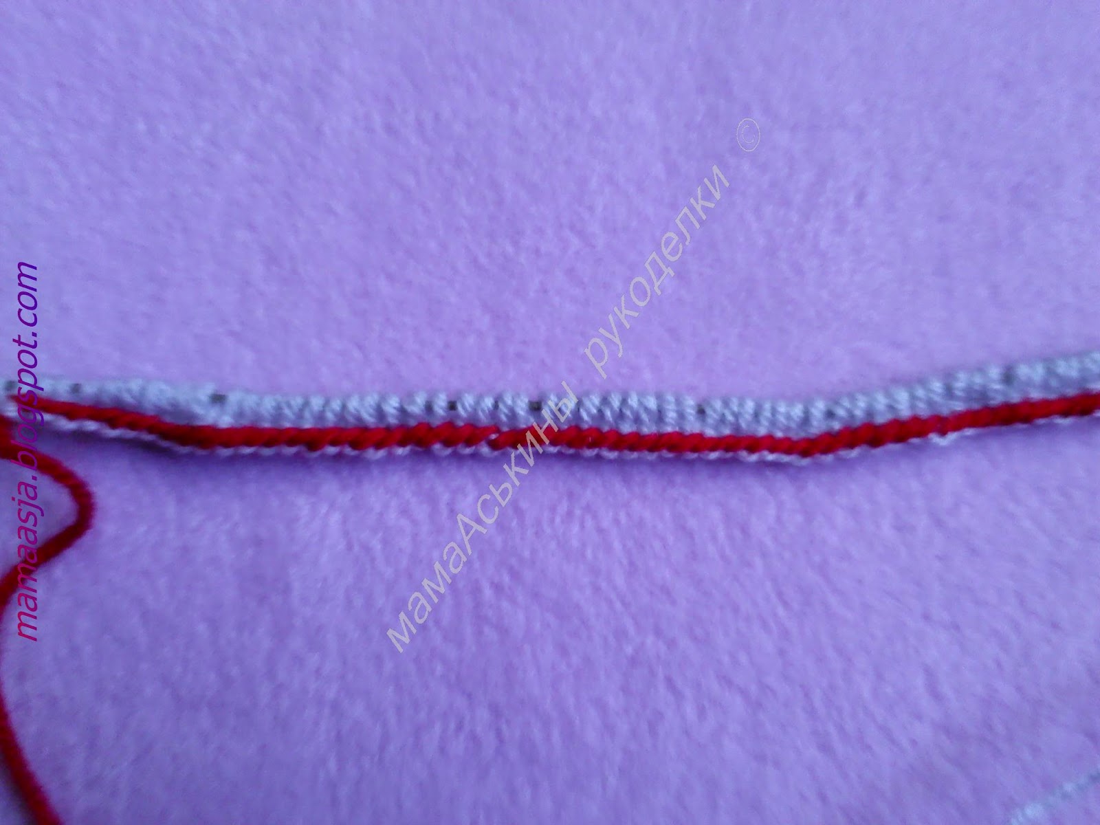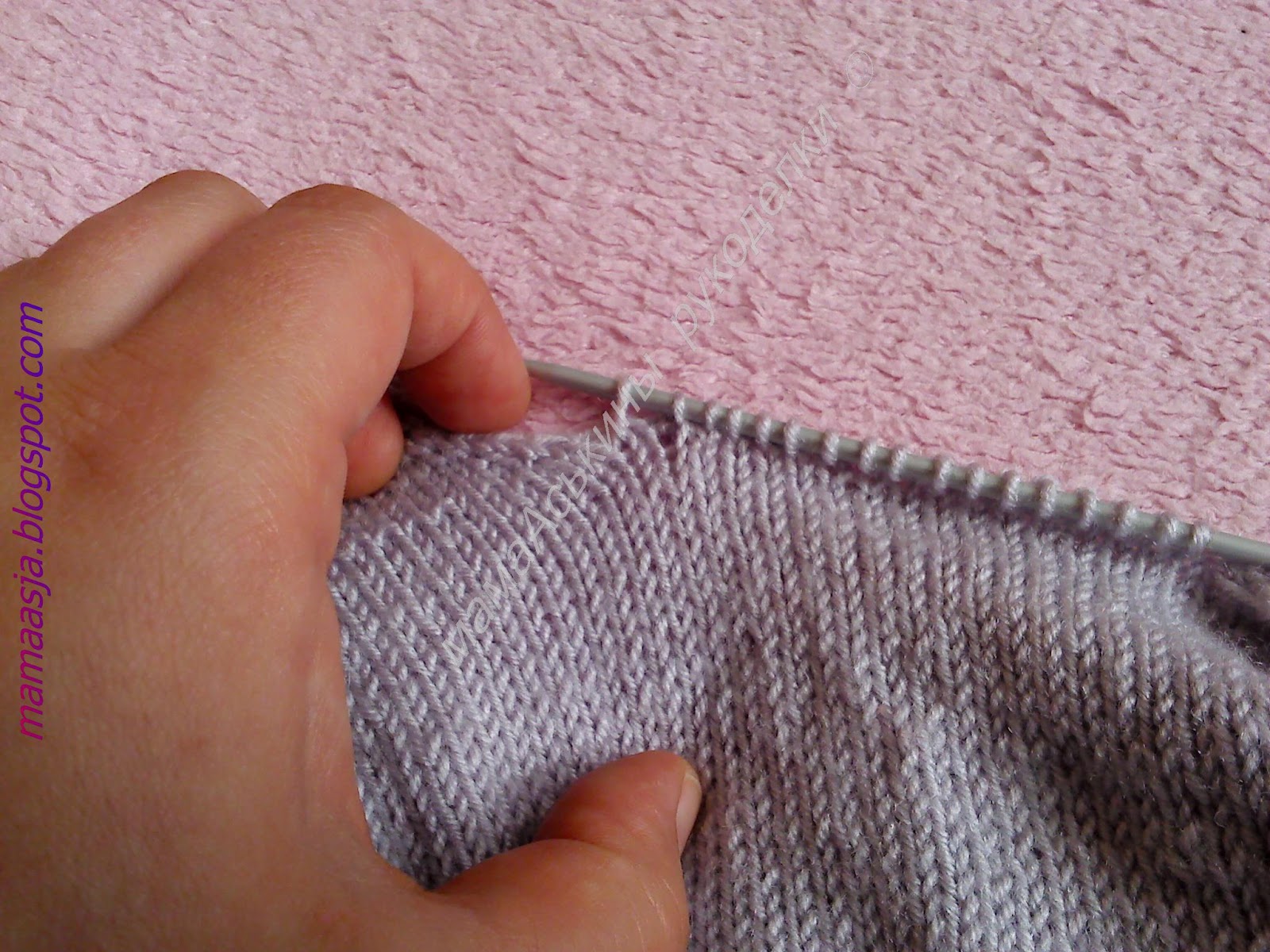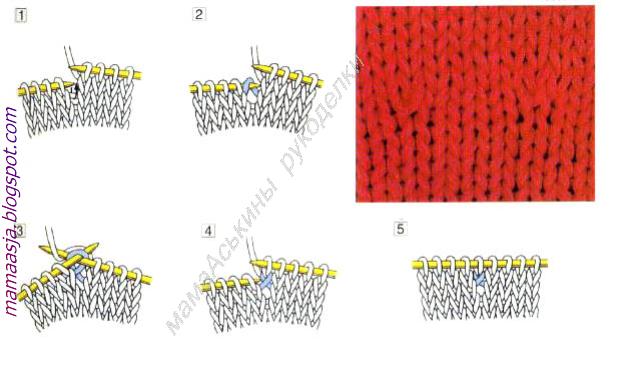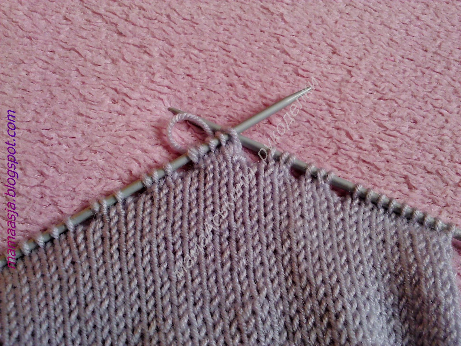 2. Изн.: провязать 25 изнаночных, набрать 10 петель (35 петель на спице)