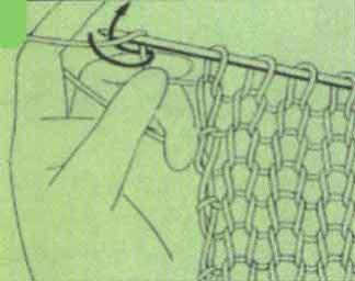 Детали сшивают справа налево по лицевой стороне горизонтальным трикотажным швом, вводя иглу в открытые петли одного полотна и захватывая дуги петель, расположенных рядом с кромочными, другого полотна.
