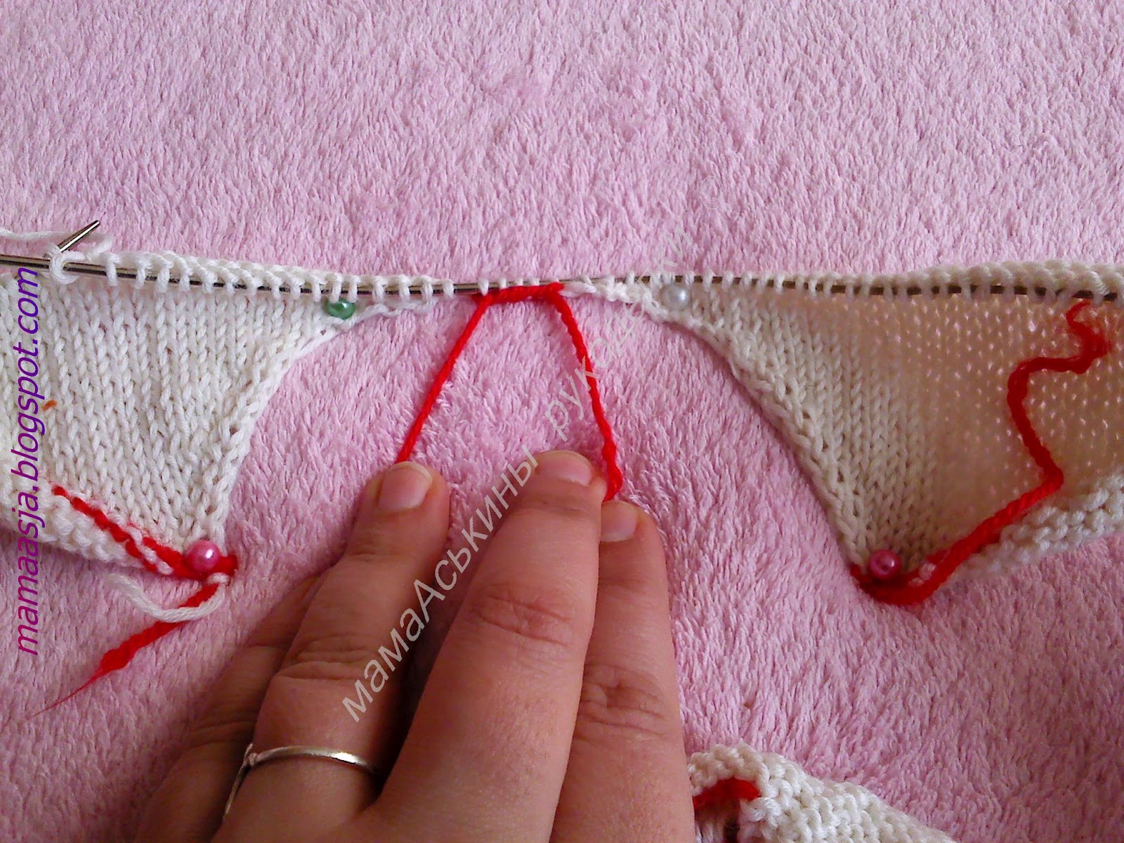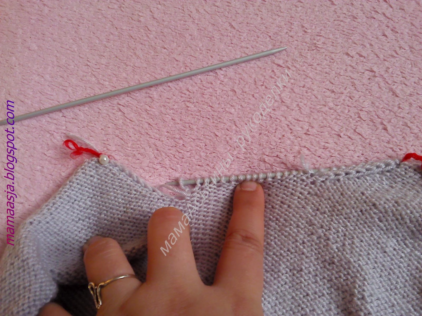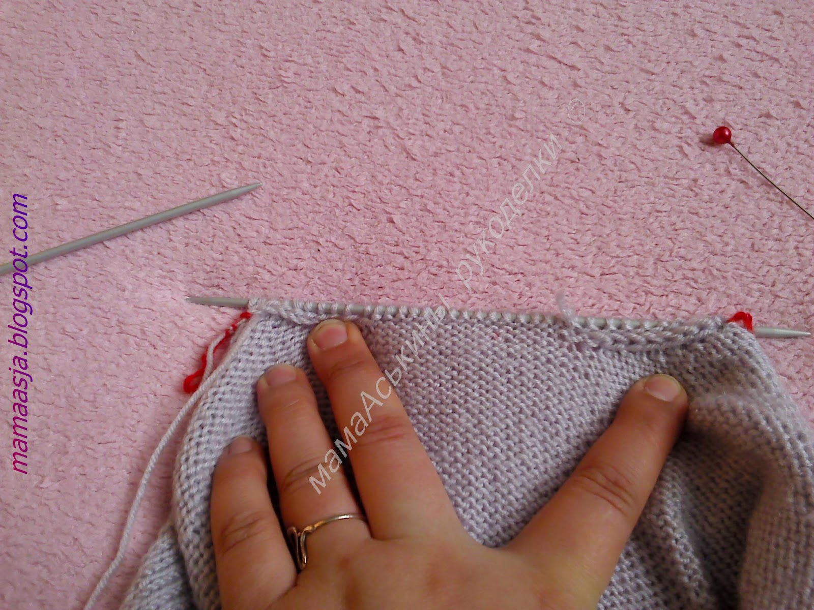 (в каждом лицевом ряду прибавляем по одной петле с каждой стороны сразу перед (после) кромочной петли. Не забываем делать прибавки на каждой штатине)