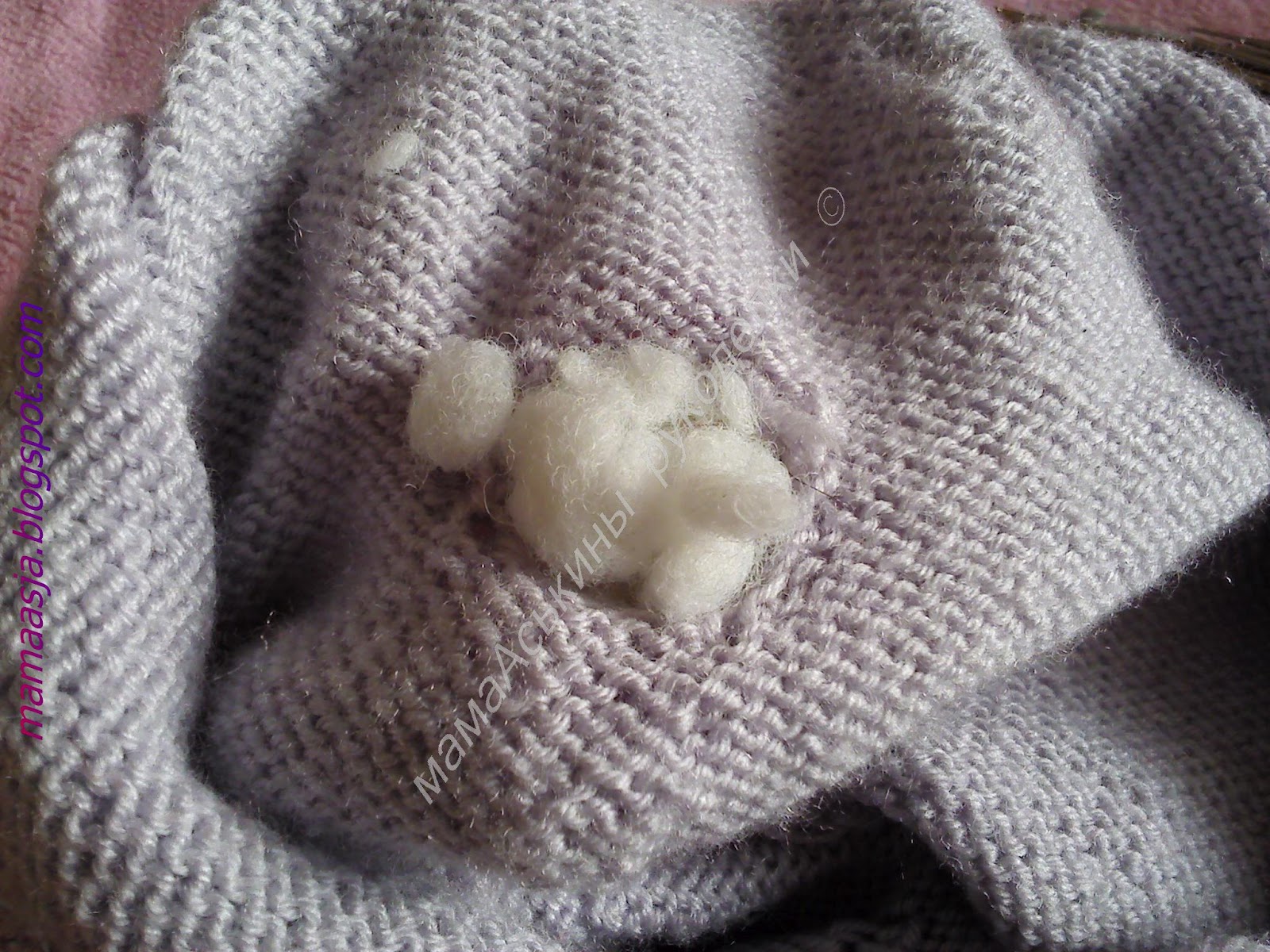 Вяжем хоботок: ну тут вообще ничего сложного распускаем бросовую нить, поднимаем петле + петли с дополнительной спицы, по бокам поднимаем петли по кромочным, вяжем до нужной длины... Потом набиваем "хобот" наполнителем для игрушек (я использую наполнитель со старых подушек), вяжем кружочек-пробку, пришиваем.