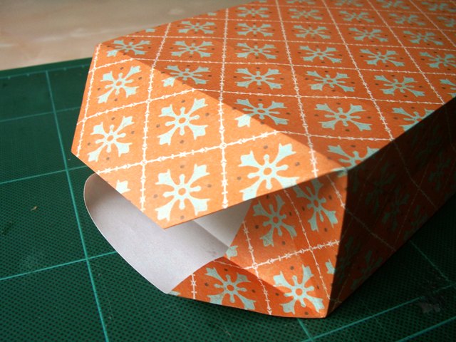 4. Следующий шаг : соединяем по три точки на каждой боковинке(провела ручкой чтобыло видно и понятно),бигуем и загибаем.