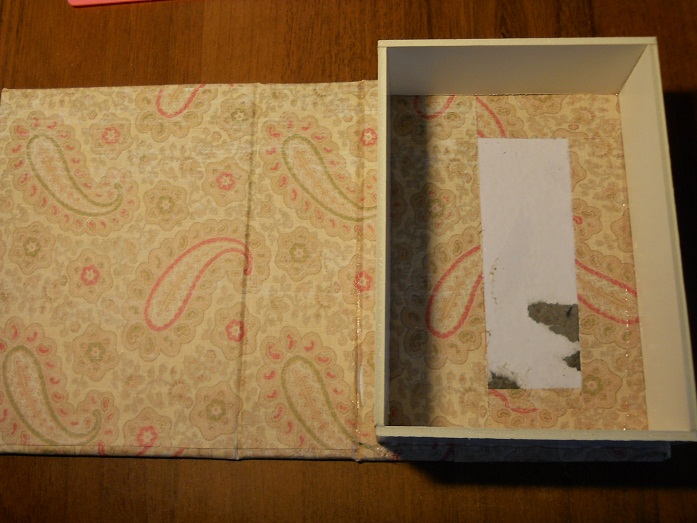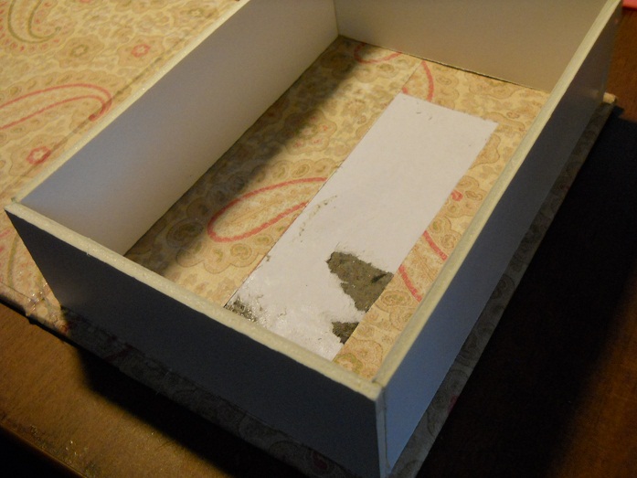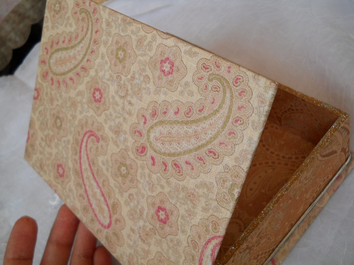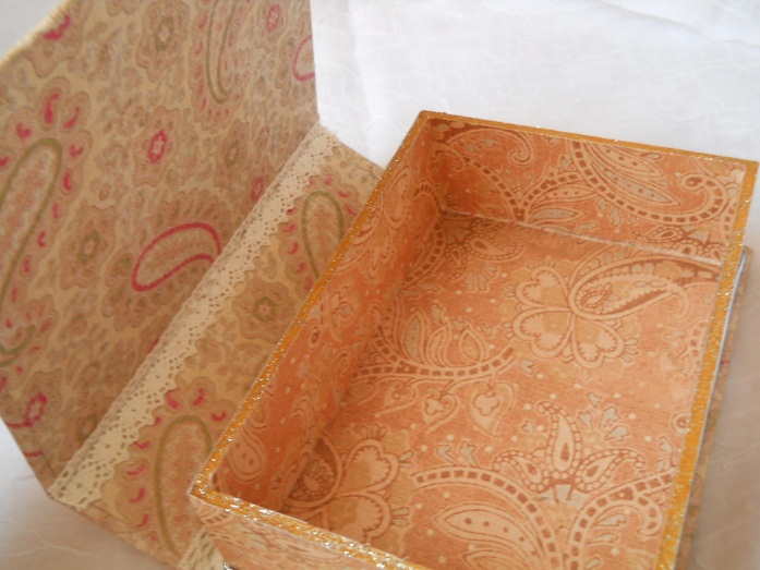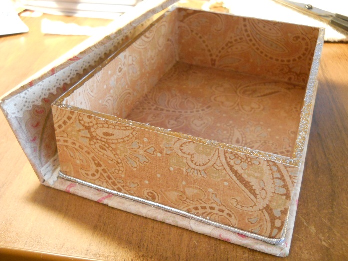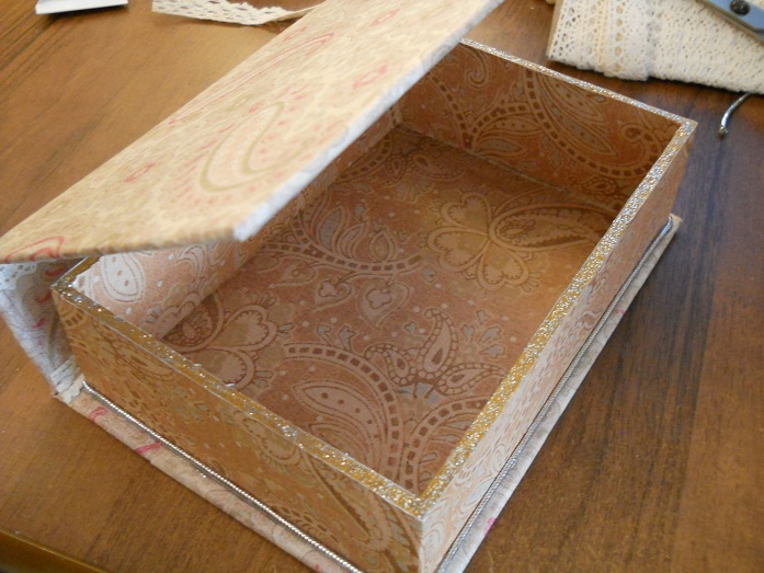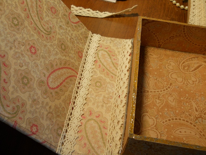 А внутренние сгибы (фото ниже) я еще оклеила вязаным хэбэ кружевом. После этого шкатулочка стала приобретать какую-то уютность...