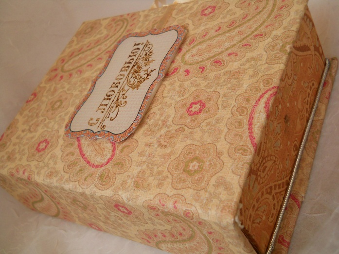 И вот она, на столе. Показываю на фото ниже, что закрывается как книга... А еще там же видно, что я укрепила стеночки шкатулки по внешнему периметру толстым серебристым кантиком, посаженным также на акриловый прозрачный клей.