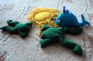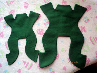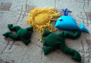 Первая игрушка у нас зеленого цвета, лягушка. Я сделала двух- побольше и поменьше. С ними можно учить такие понятия - больше-меньше, тяжелее-легче. Выкройку можно перерисовать прям с экрана, увеличив до нужного размера или нарисовать от руки. Расстояние АВ не зашиваем для набивки.