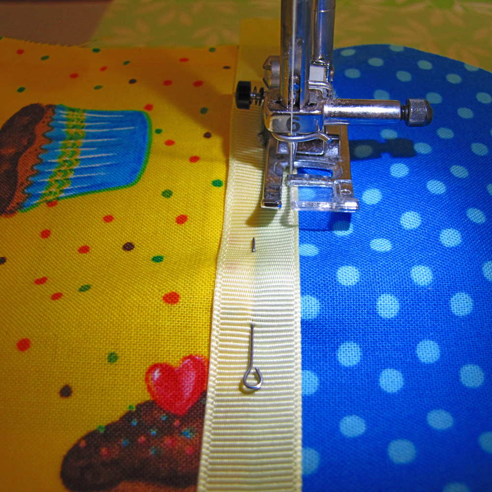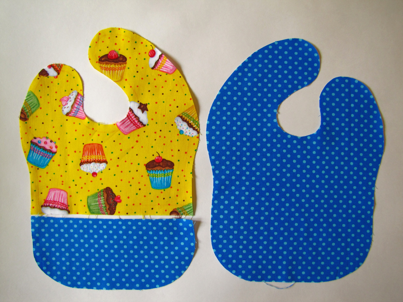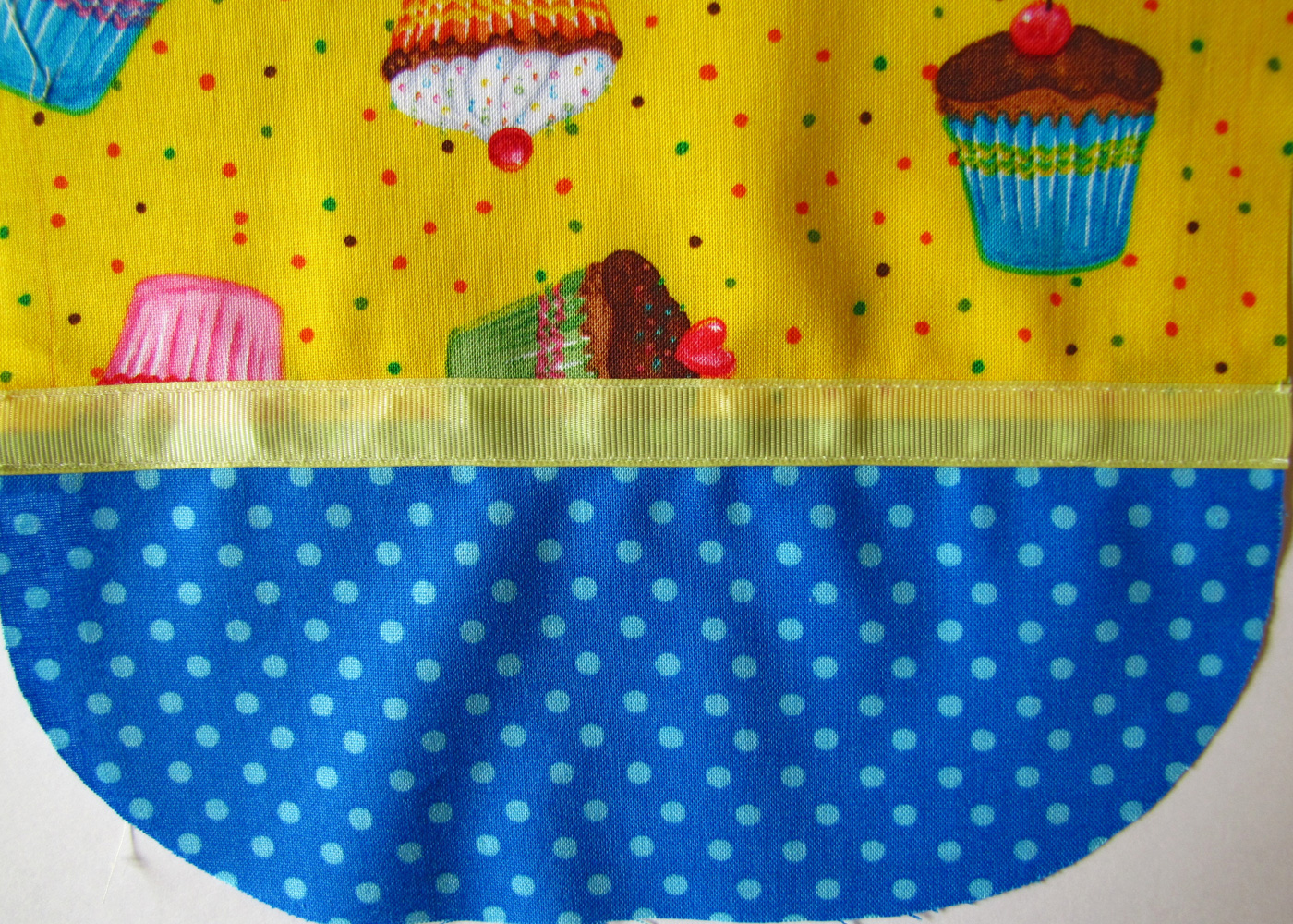 И прошиваем косой бейкой 2 половинки слюнявчика. Не прошивайте сразу всё, чтобы осталось место для того, чтобы положить украшения.