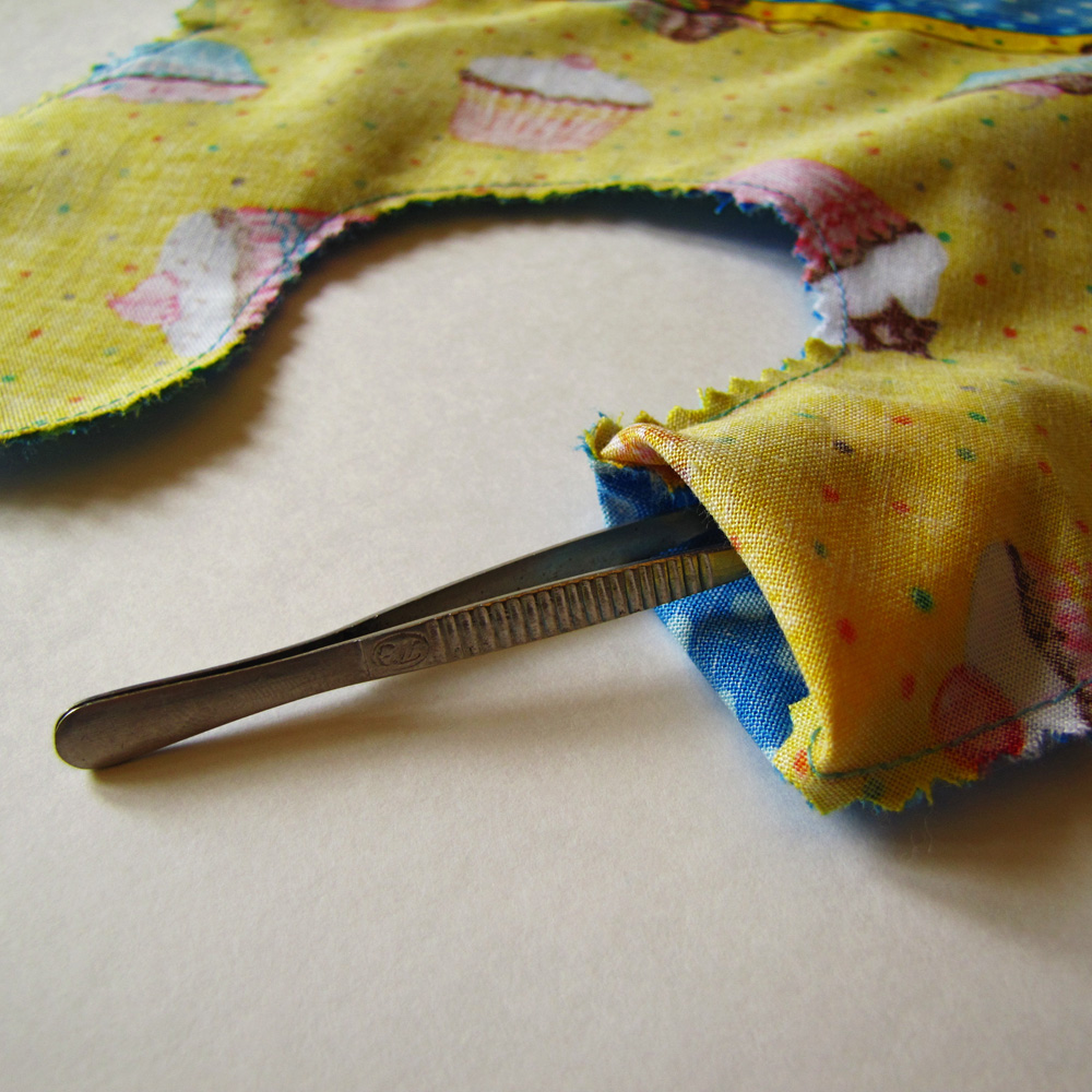 Выворачиваем деталь на изнанку с помощью пинцета и палочки для суши.