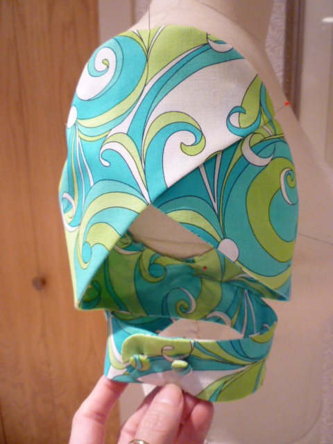 Окончательный узорами. Я поместил пазов где точки были так я буду знать, где противоположные края лепестков должен быть помещен. У меня оригинального пазы втулки с указанием спереди и сзади. Я также добавил выемку, где оригинальный шов подмышками было бы. Таким образом, я буду знать, где клип группы при шитье.