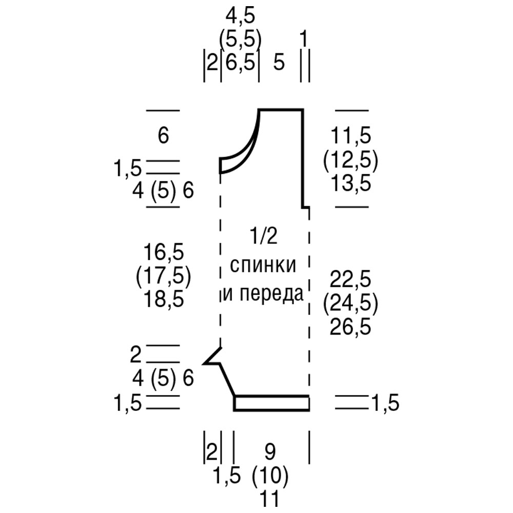 Через 26,5 (29,5) 32,5см от планки для горловины средние 14 (20) 26п. закрыть и обе стороны закончить раздельно.
