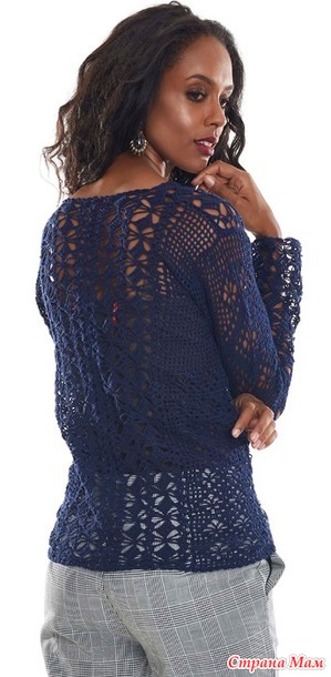 Ажурный пуловер цвета темное индиго Опубликовала лиора мой светик в группе Все в ажуре... (вязание крючком)