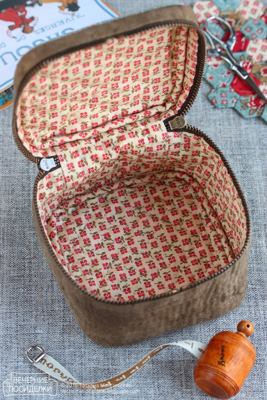 Стенки простёганы вдоль, а донышко и задняя сторона по диагонали, также, как и крышка.