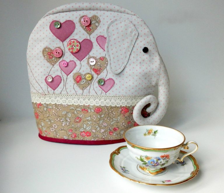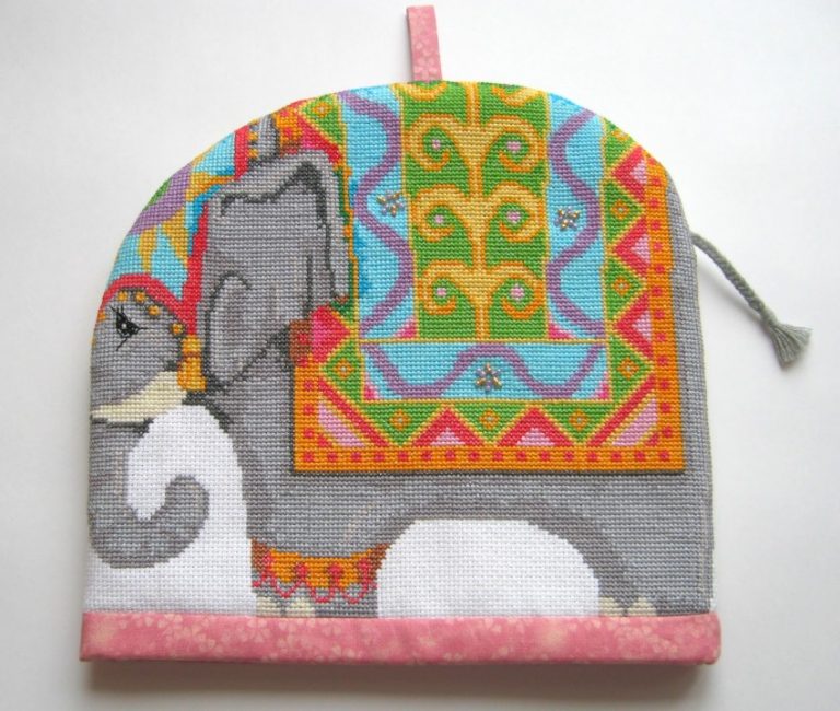 Если нравятся слоны, но нет возможности вышить его собственными руками, можно сделать его из ткани. Получится не менее интересная и яркая грелка. Дополнить поделку можно с помощью пуговиц, стразов, бусин и т. д.