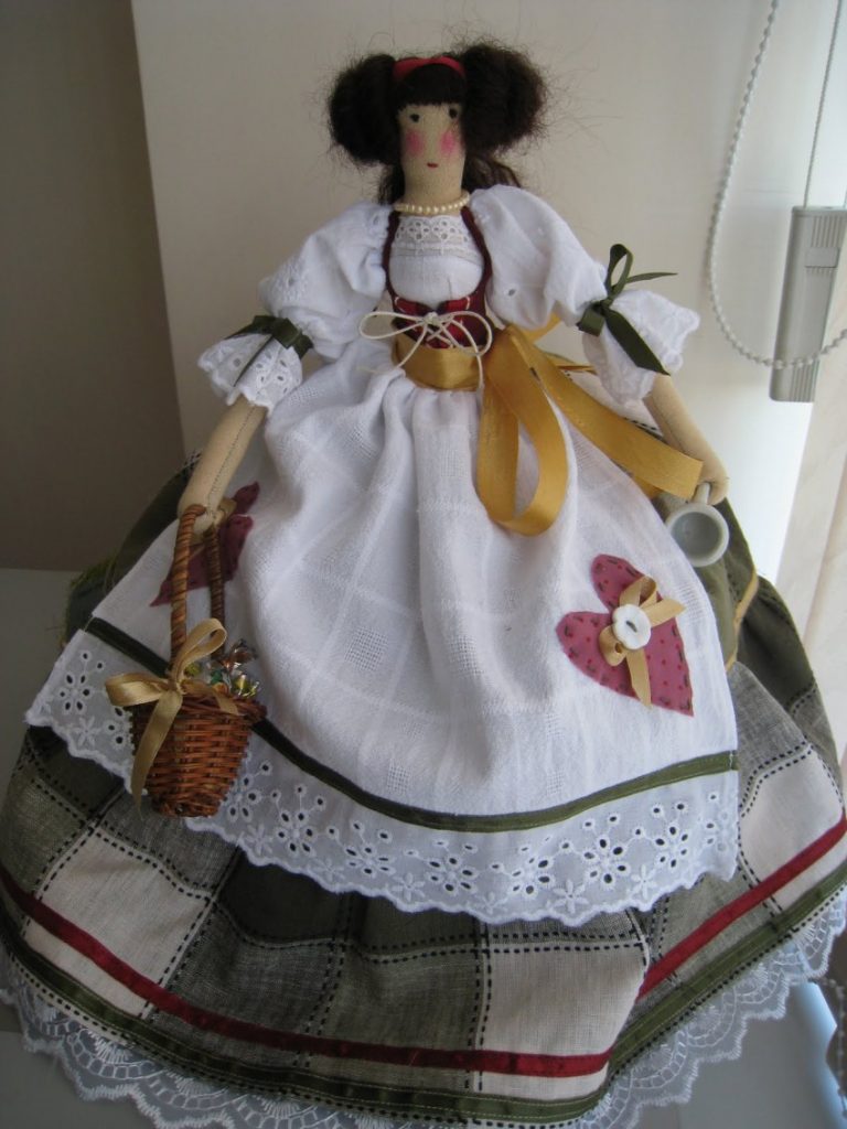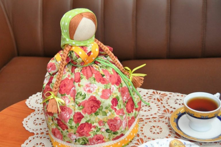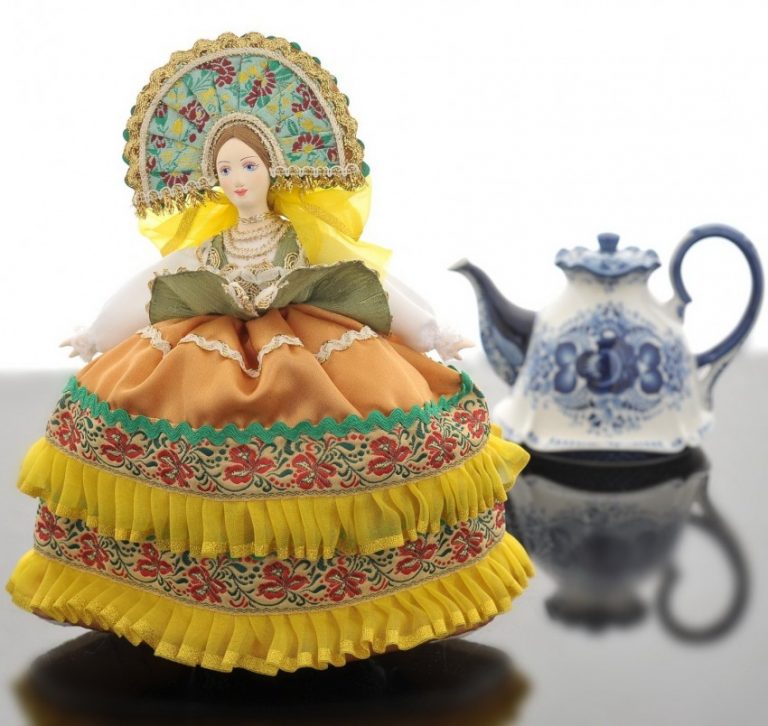 Никто сразу и не догадается, что под красивой куклой скрывается небольшой чайник.