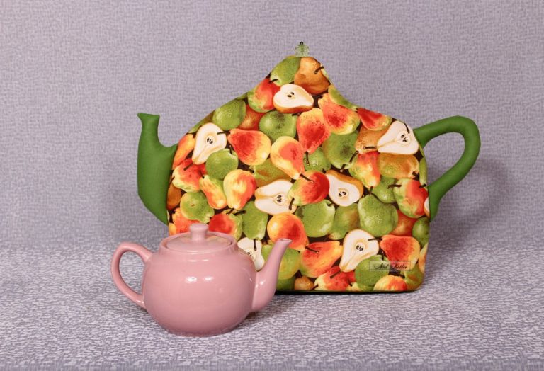 Можно изготовить на заварной чайник чехол, который будет не полностью скрывать его, а лишь обтягивать.