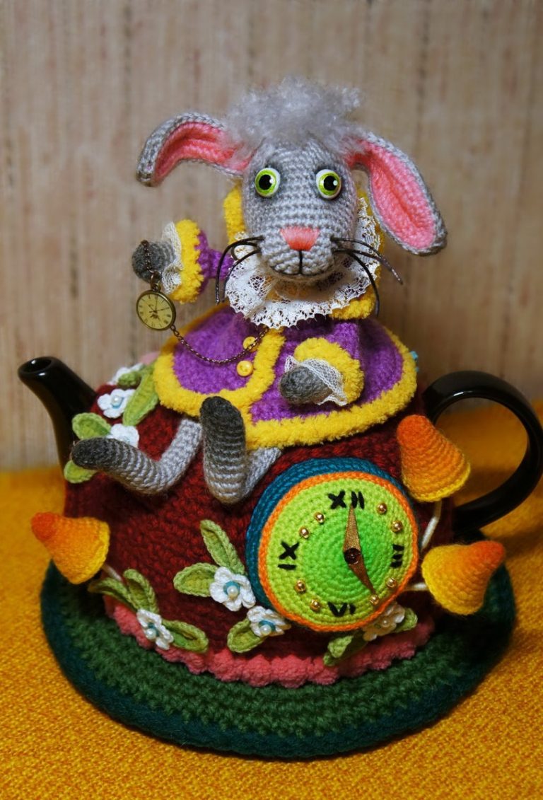 Вдохновение можно черпать из художественных произведений, например, связать грелку по мотивам сказки «Алиса в стране чудес».