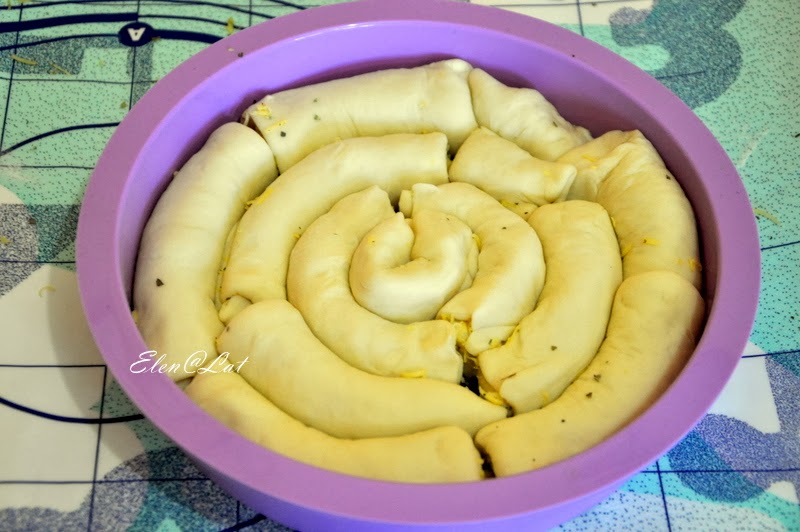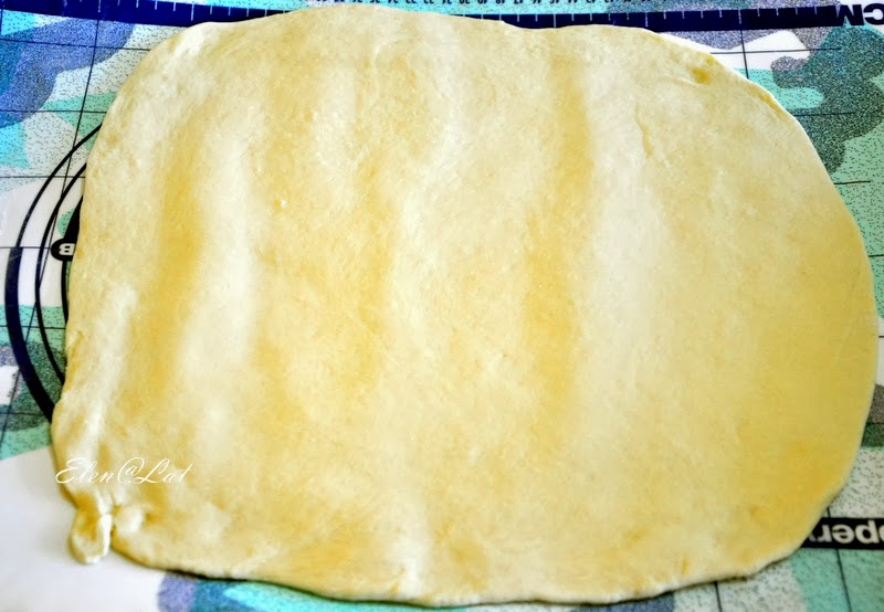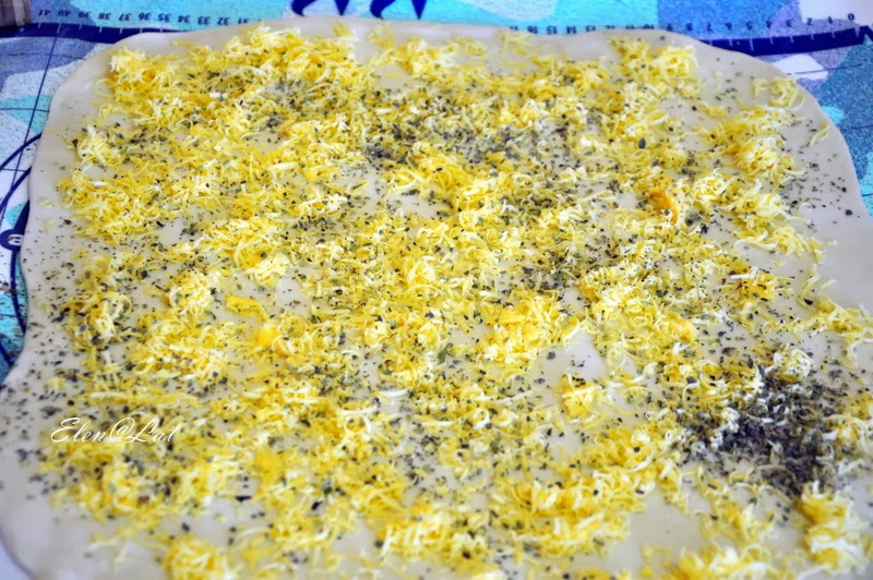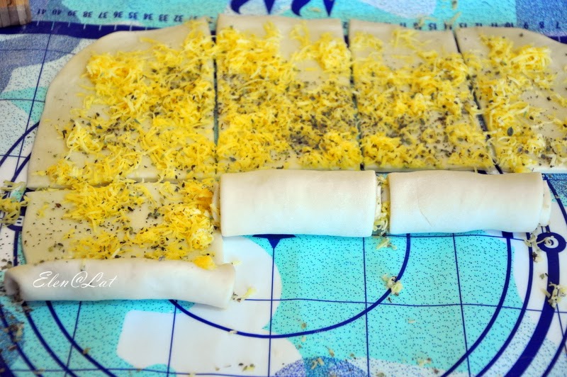 Теперь поделить пласт из теста на прямоугольники. Затем каждый прямоугольник свернуть рулетом!!