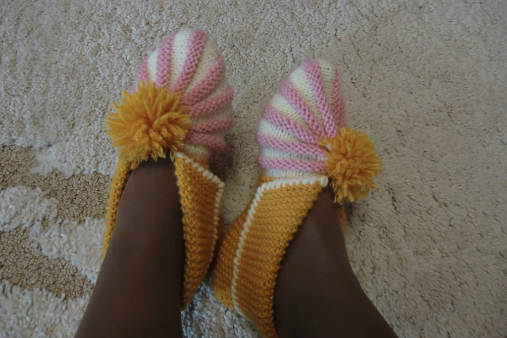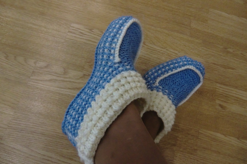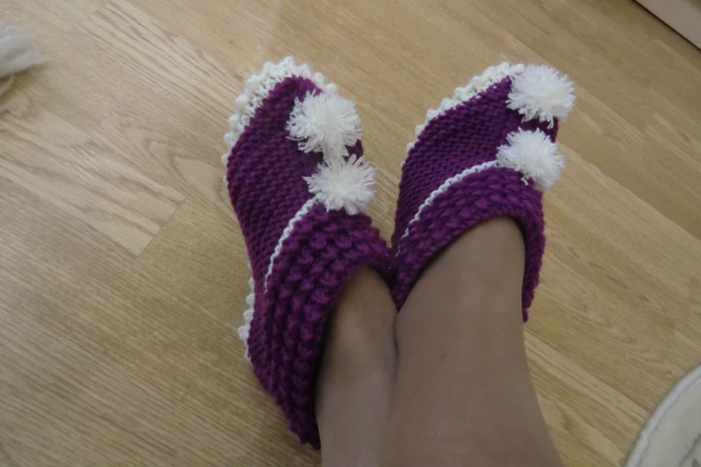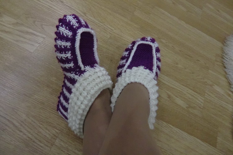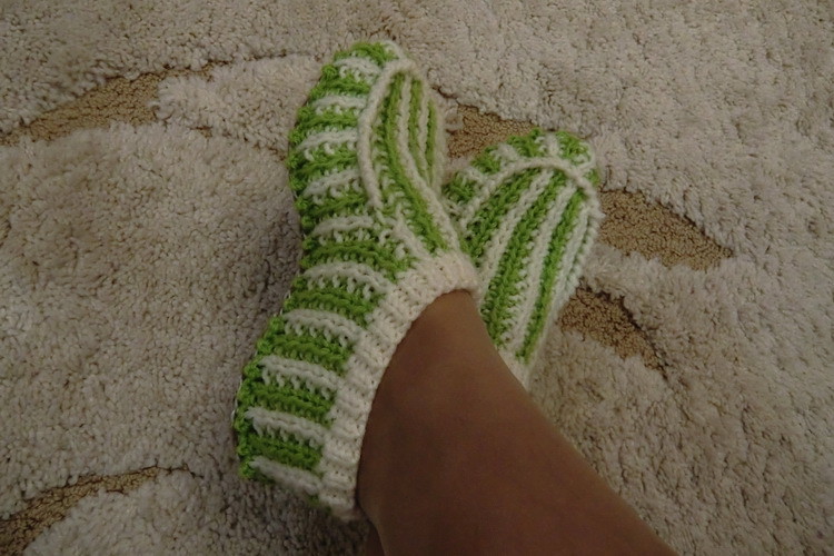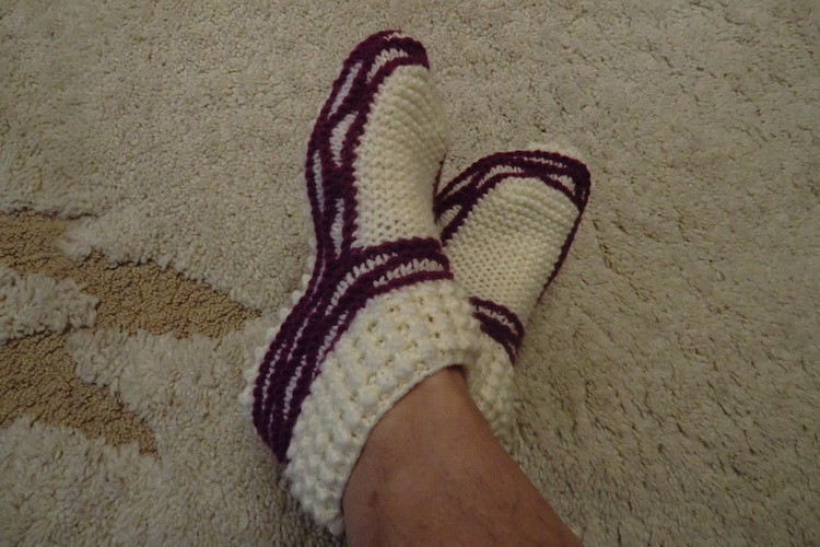 След вяжу как у всех тапочек, беру средние 14 петель и вязать как пятку. Я пятку сшивала.