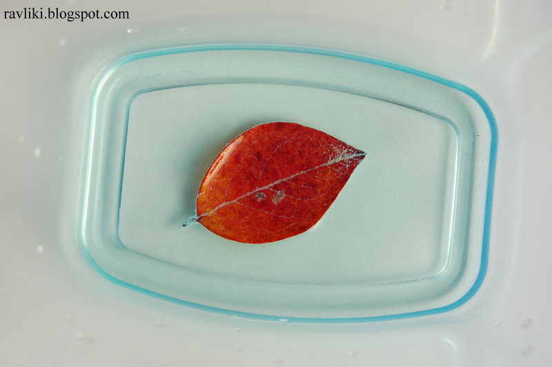 | Для фотографий я выбрала фотогеничный лист. В дело пошло нечто более подходящее, но менее симпатичное. |