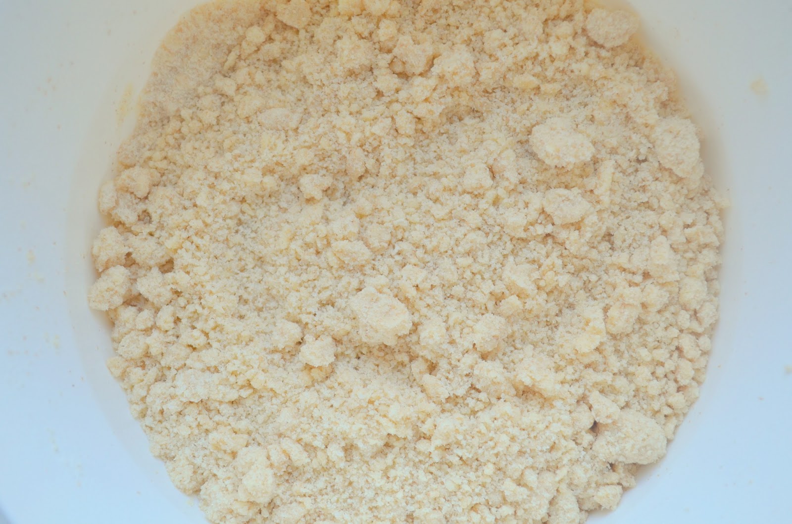 2. Добавить сахар, муку и соль и растереть все руками в крошку.