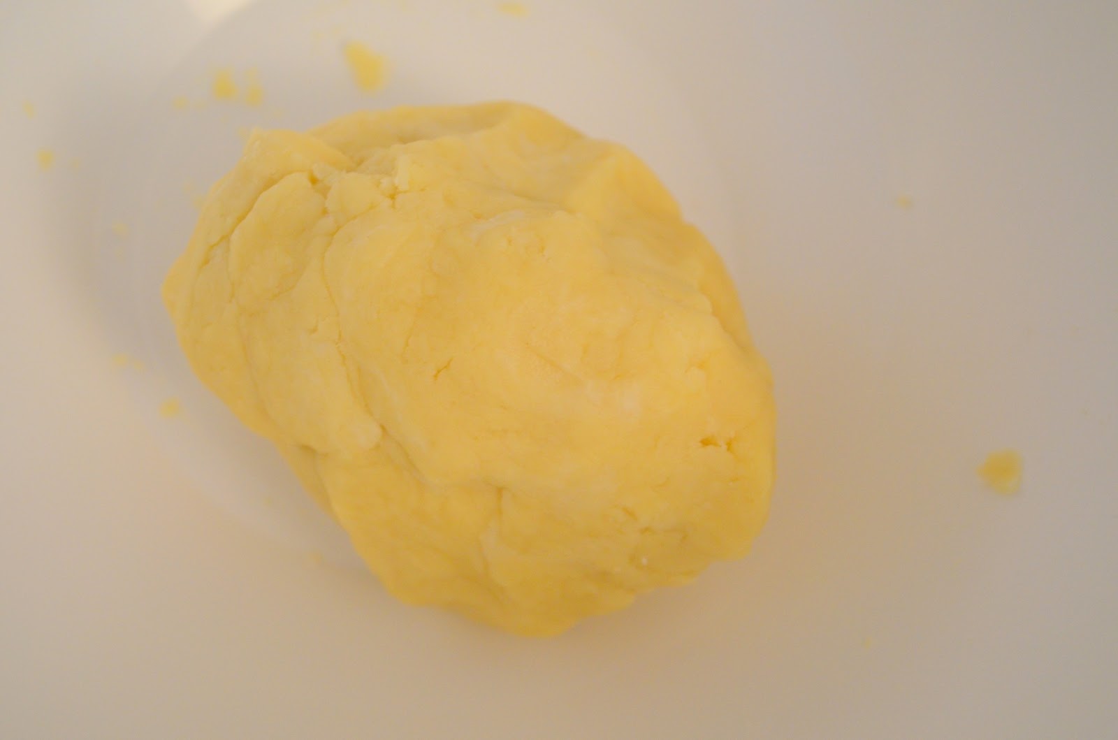 3. Добавить яйцо и замесить тесто. Скатать в шар. Если оно будет суховатым добавить 1-2 ст ложки ледяной воды