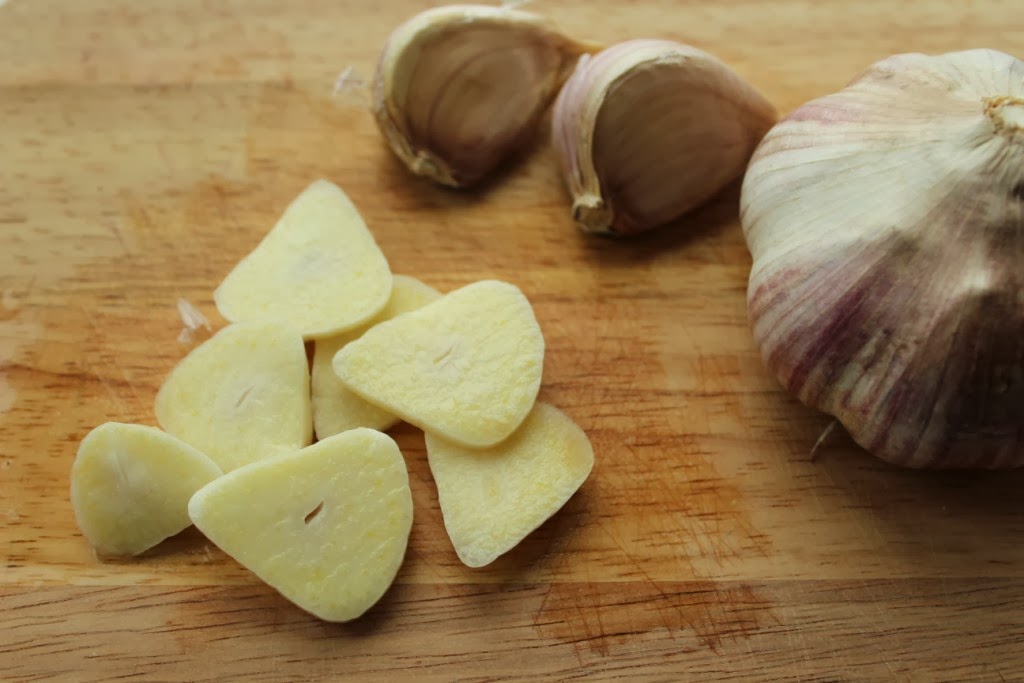 Чеснок нарезать пластинками.