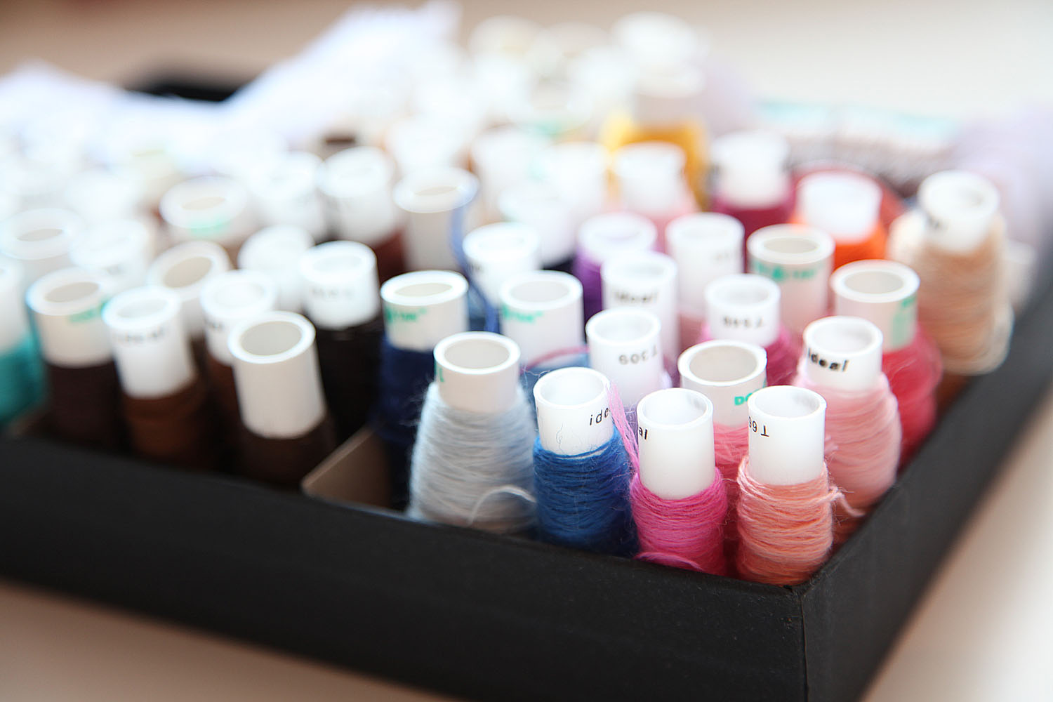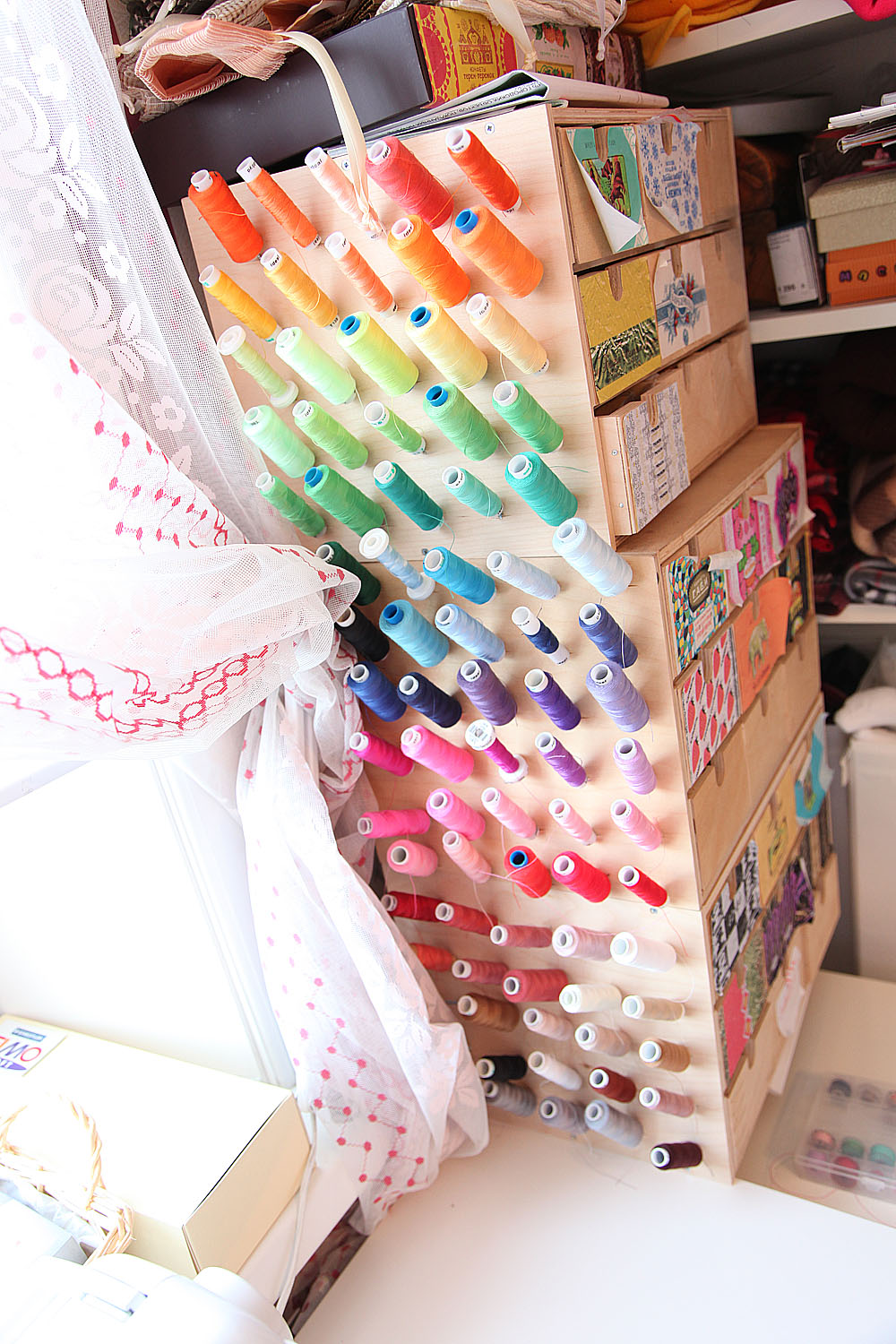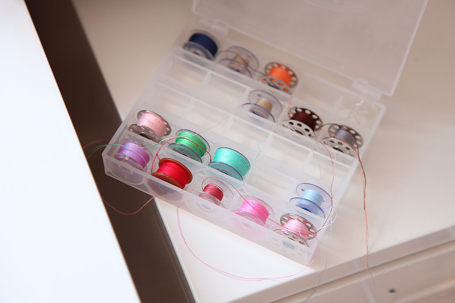 Снизу самые ходовые. К ним я могу дотянуться сидя за машинкой легче всего. Выше уже все остальные цветные.