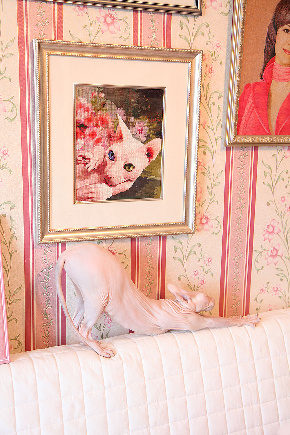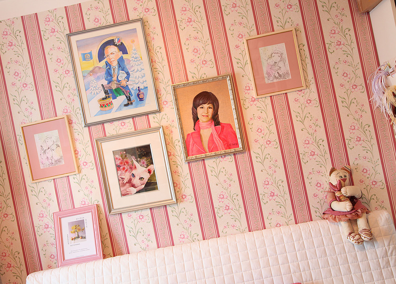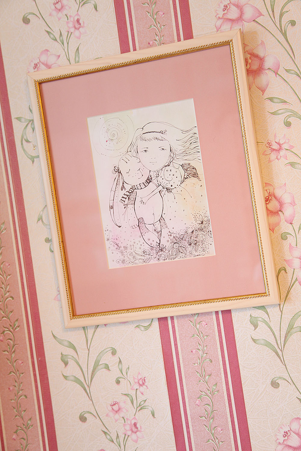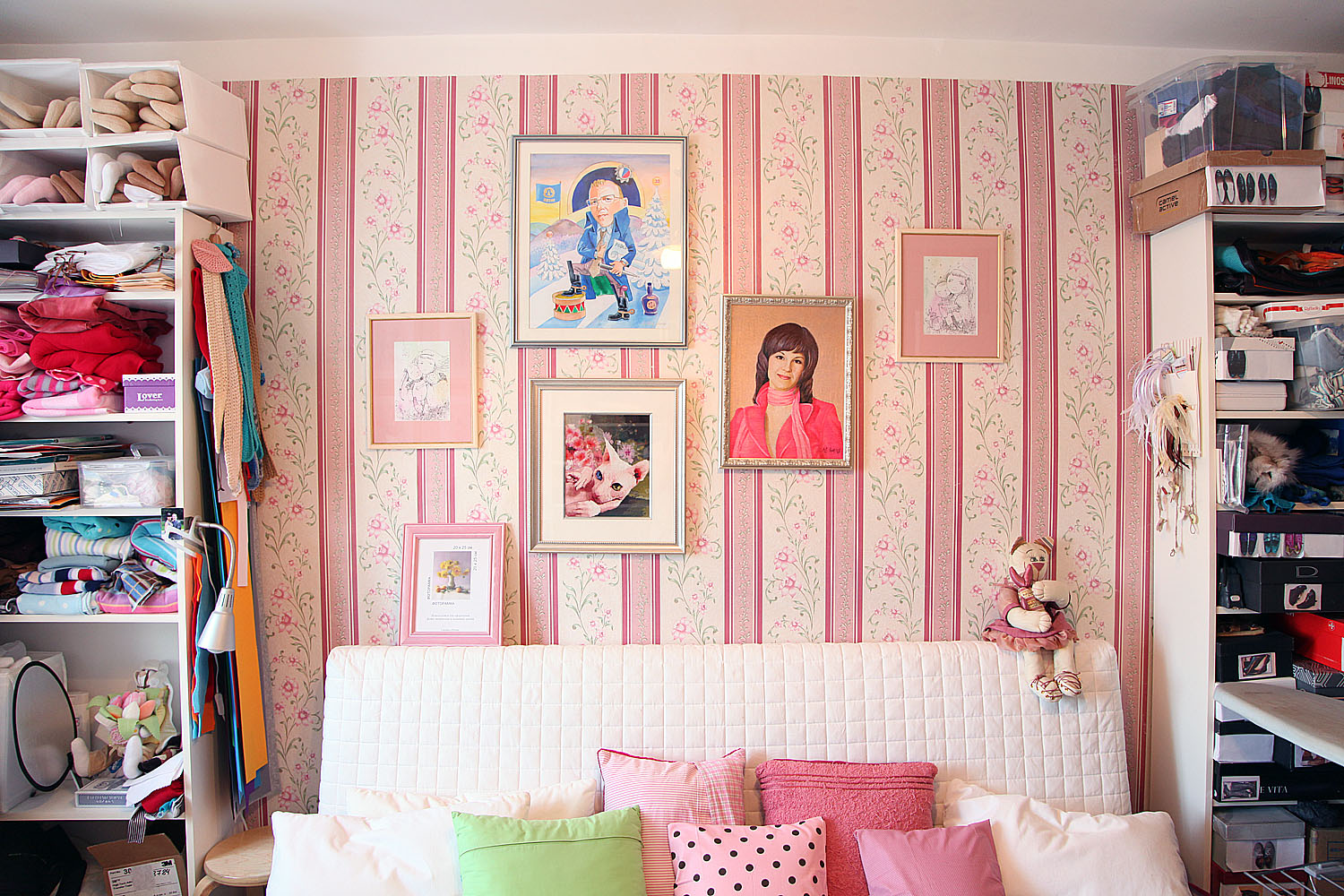 Почему розовый? Все настолько просто... Тут были эти полосатые обои с цветочками. Вот и пришлось об игрывать ситуацию.