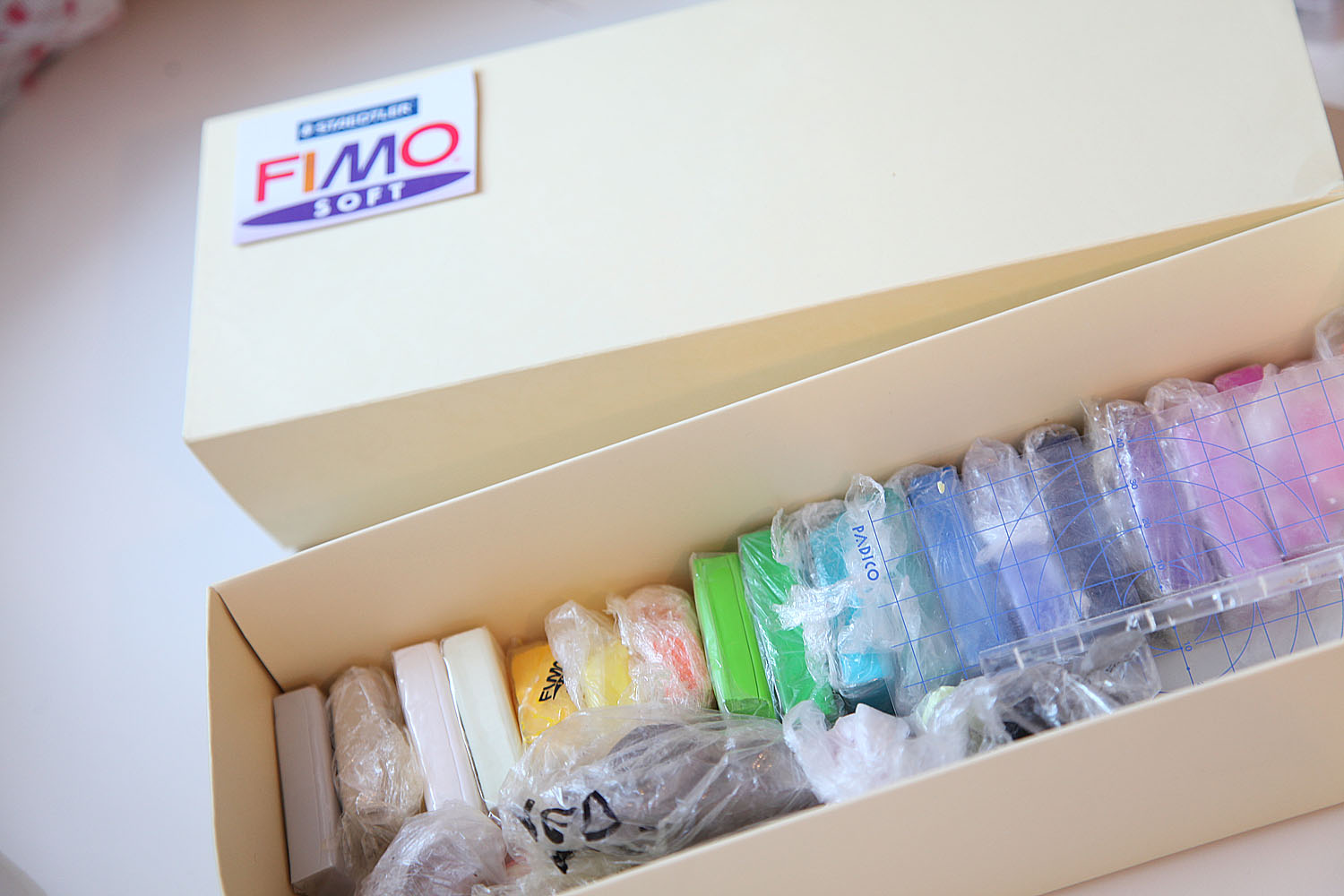 В этой коробочке лежит полимерка и всякие причиндалы к ней.