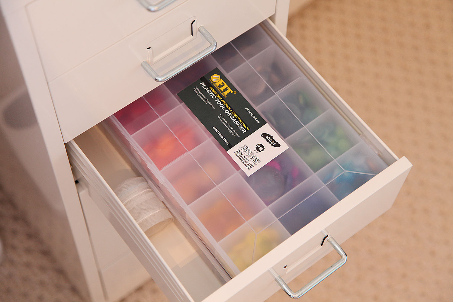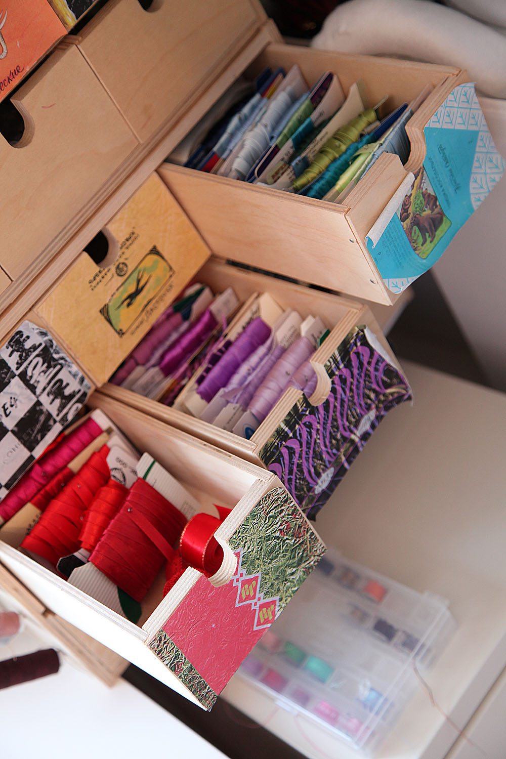 В верхних ящиках лежит бисер-бусер. Так же по цветам.