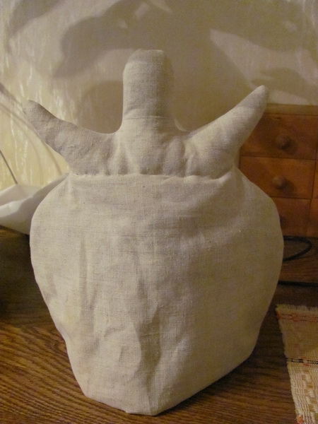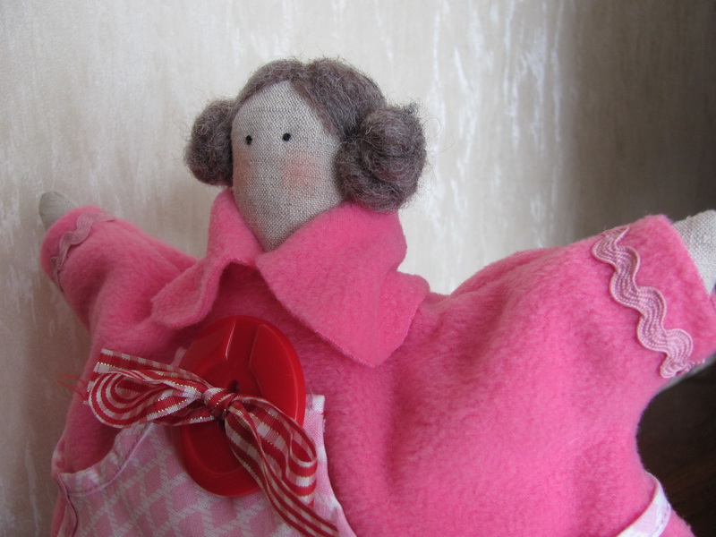 Материалы: туловище - лён; подкладка - бязь; одежда - хлопок, флис; "утеплитель" - синтепон; волосы - шерсть для валяния.