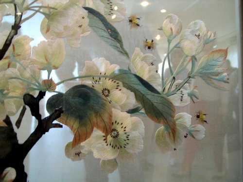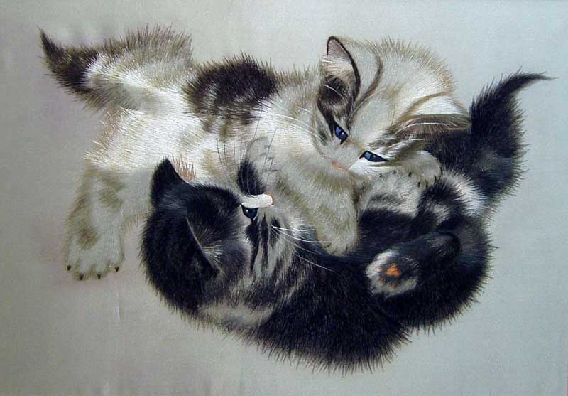 Вышивка шелком является одним из видов художественной вышивки гладью. Традиционная китайская вышивка шелком уходит своими корнями в глубокую древность и насчитывает уже более 4000 лет. В первой половине прошлого века мастерам вышивки г. Сучжоу удалось гармонично объединить традиционное китайское искусство вышивки шелком с приемами европейской школы живописи. В результате появились шедевры вышивки шелком, украшающие галереи известных музеев, а также частные коллекции. Вышить можно практически все: будь то портрет, пейзаж или что-либо другое. Помимо классической односторонней, вышивка может быть и двусторонней, но ценится она дороже. Вышивка выполнена шелковой нитью на шелке (прозрачном, тонированном или более плотном под пейзаж или портрет). Нить не выгорает со временем и не теряет блеска. Переданная следующим поколениям, картина будет выглядеть так же и по прошествии многих десятков лет.