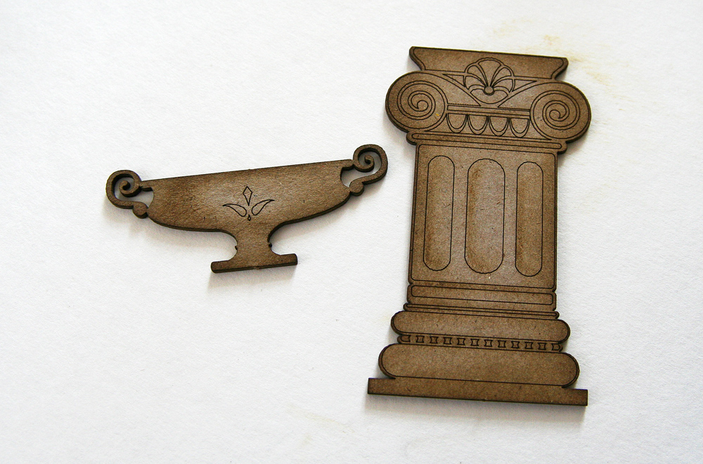Как вы уже, наверное, знаете, в магазине Scrapbooksale появилось много нового замечательного чипборда, в том числе и набор с колоннами и вазами, который я приобрела для своего альбома. Покрутив и повертев его в разные стороны, я пришла к выводу, что использовать его в таком виде нереально - кусок серого картона еще ни что не украшал… Поэтому я решила его раскрасить! Хочу показать вам как.